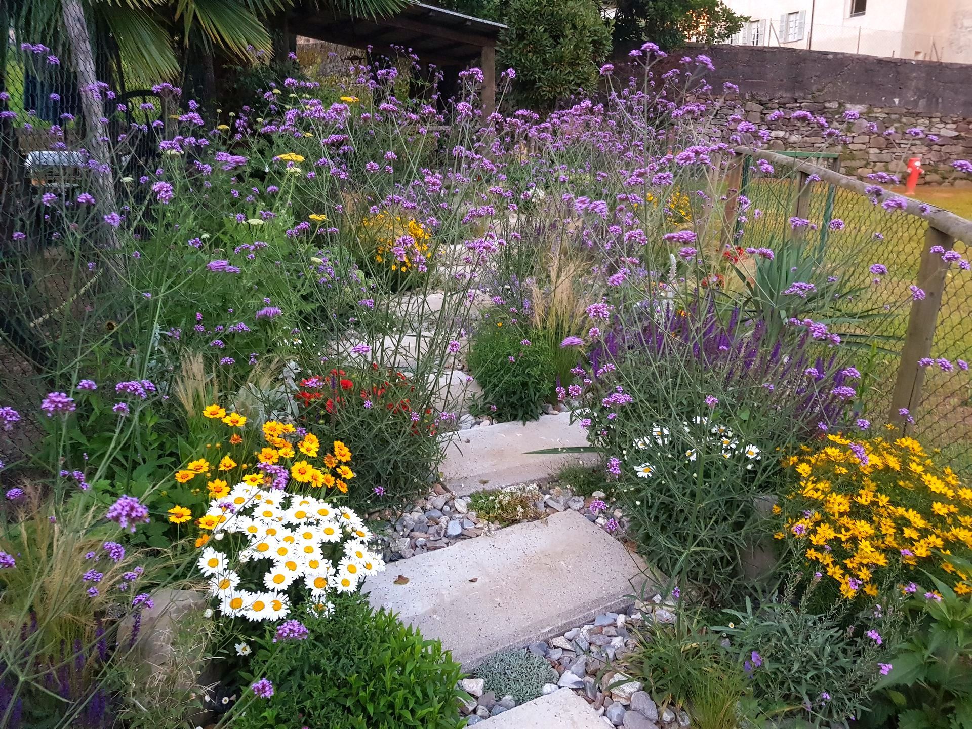 Del giardino vengono studiati gli spazi, le cromie di fioritura, gli arredi e l'illuminazione, mantenendo sempre una perfetta linea ed utilizzando soprattutto essenze tipiche del bacino mediterraneo.